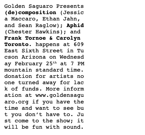 Live at Golden Saguaro: (De)composition, Aphid, Frank Tornoe & Carolyn Toronto